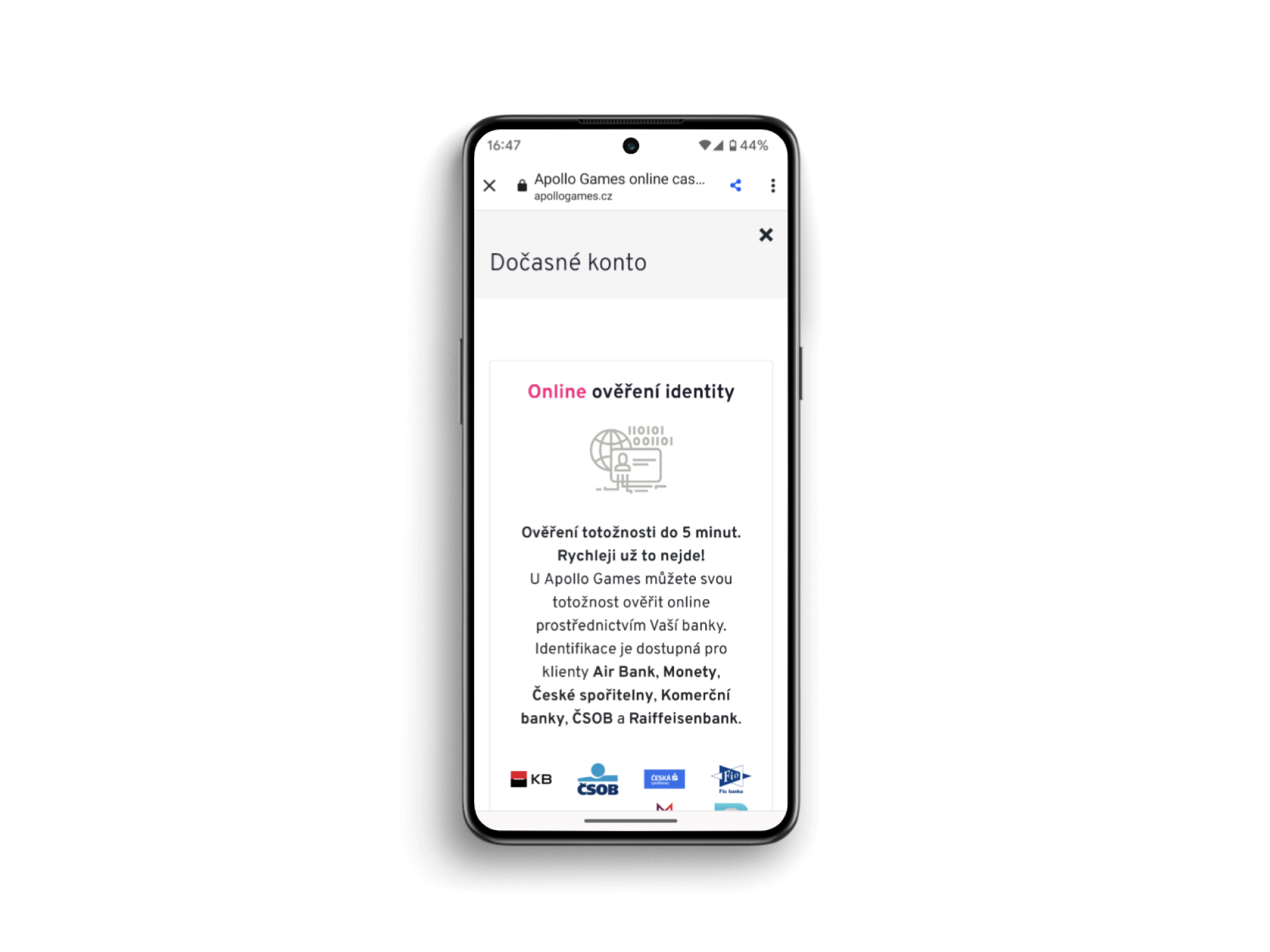 Klasický bankovní převod: U klasického bankovního převodu začíná minimální vklad na 100 Kč. Apollo Games na svých stránkách uvádí, že peníze budete mít na hráčském účtu nejpozději do následujícího pracovního dne.
