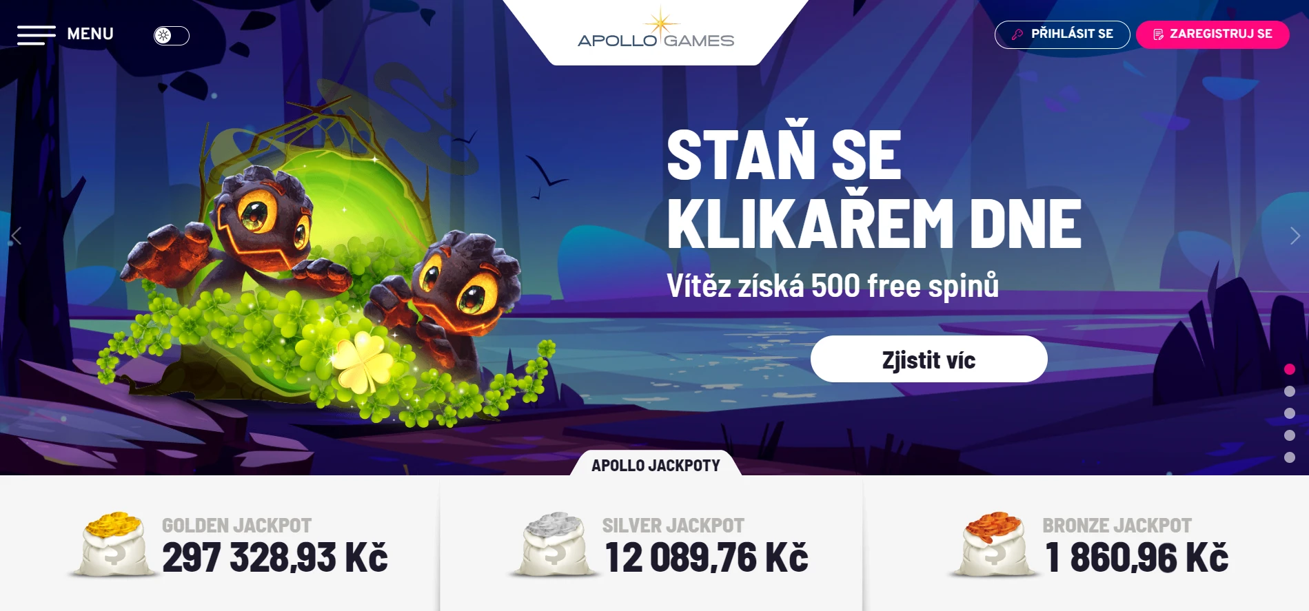 Apollo Games k plně dokončené registraci přidává celkem 100 free spinů. Jedná se o 20 volných zatočení na 5 automatech. Další volné točky můžete získat v rámci různých promo akcí, jakou je třeba Klikař týdne.
