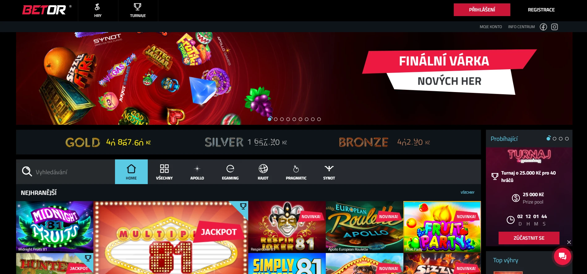 Betor pravidelně vypisuje pro své hráče turnaje. Rozkliknete si příslušnou záložku a hned vidíte, na jakých automatech jsou aktuálně vypsané turnaje, o kolik se hraje a jaké je pořadí zúčastněných hráčů.