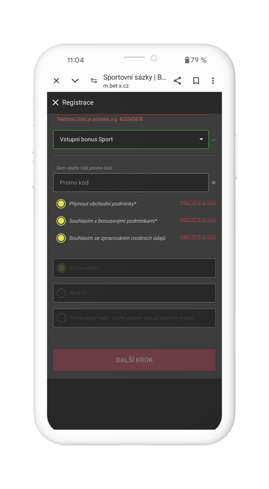 Registrace z počítače probíhá podobně jako z mobilního telefonu. Stačí navštívit webovou stránku BetX, kliknout na tlačítko registrace, vyplnit všechny potřebné informace a ověřit identitu online přes bankovní identitu.