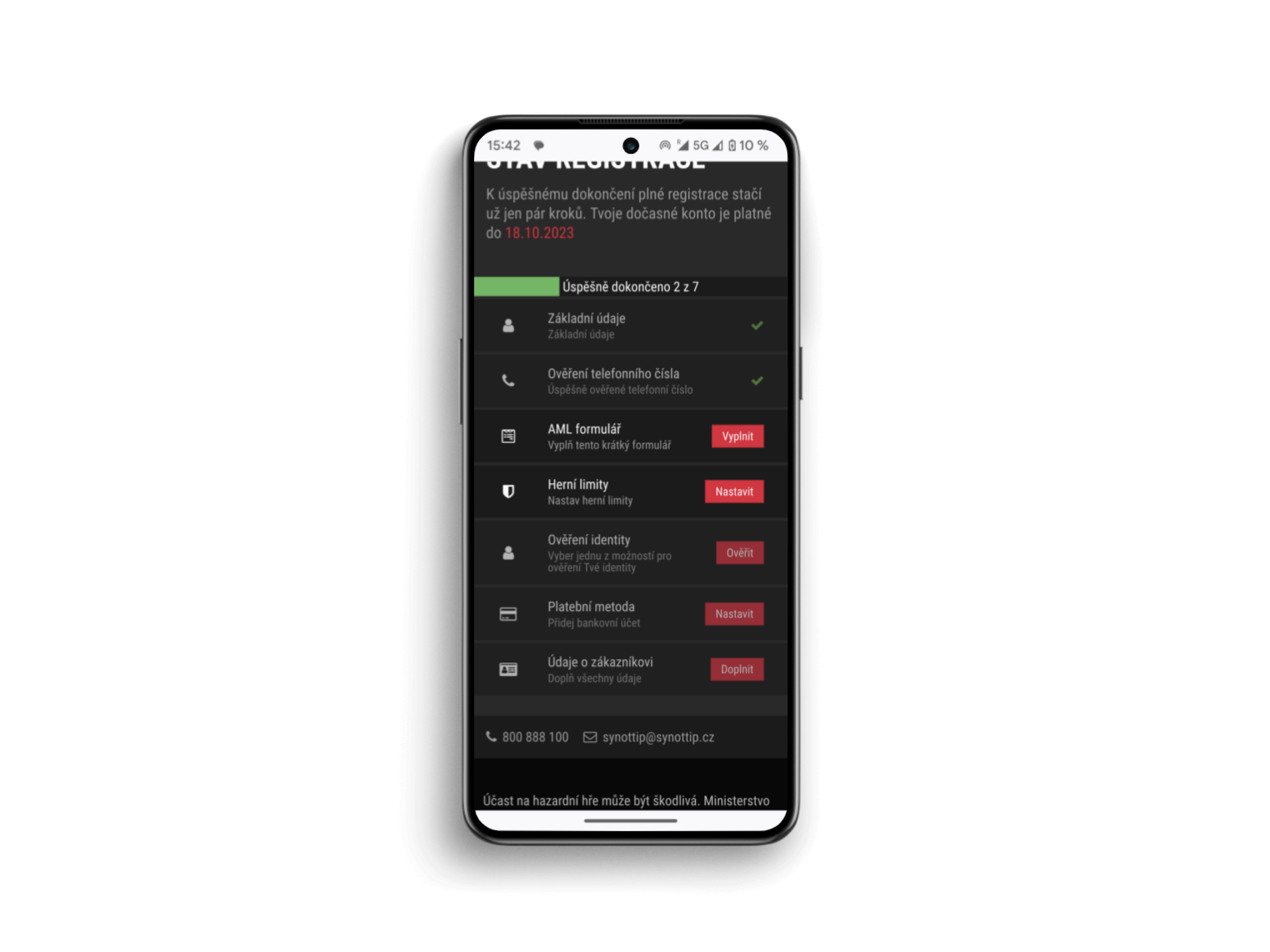 Synot Tip nabízí stejný bonus za registraci bez vkladu pro hráče v online casinu i pro sázející na sporty. Už za dočasnou registraci získáte 50 Kč. Za ověření registrace potom 200 Kč a za ověření platební metody 250 Kč. Celkem tak dostanete 500 Kč a casino příjemně motivuje hráče za plnění nepříjemné administrativy spojené s registrací.