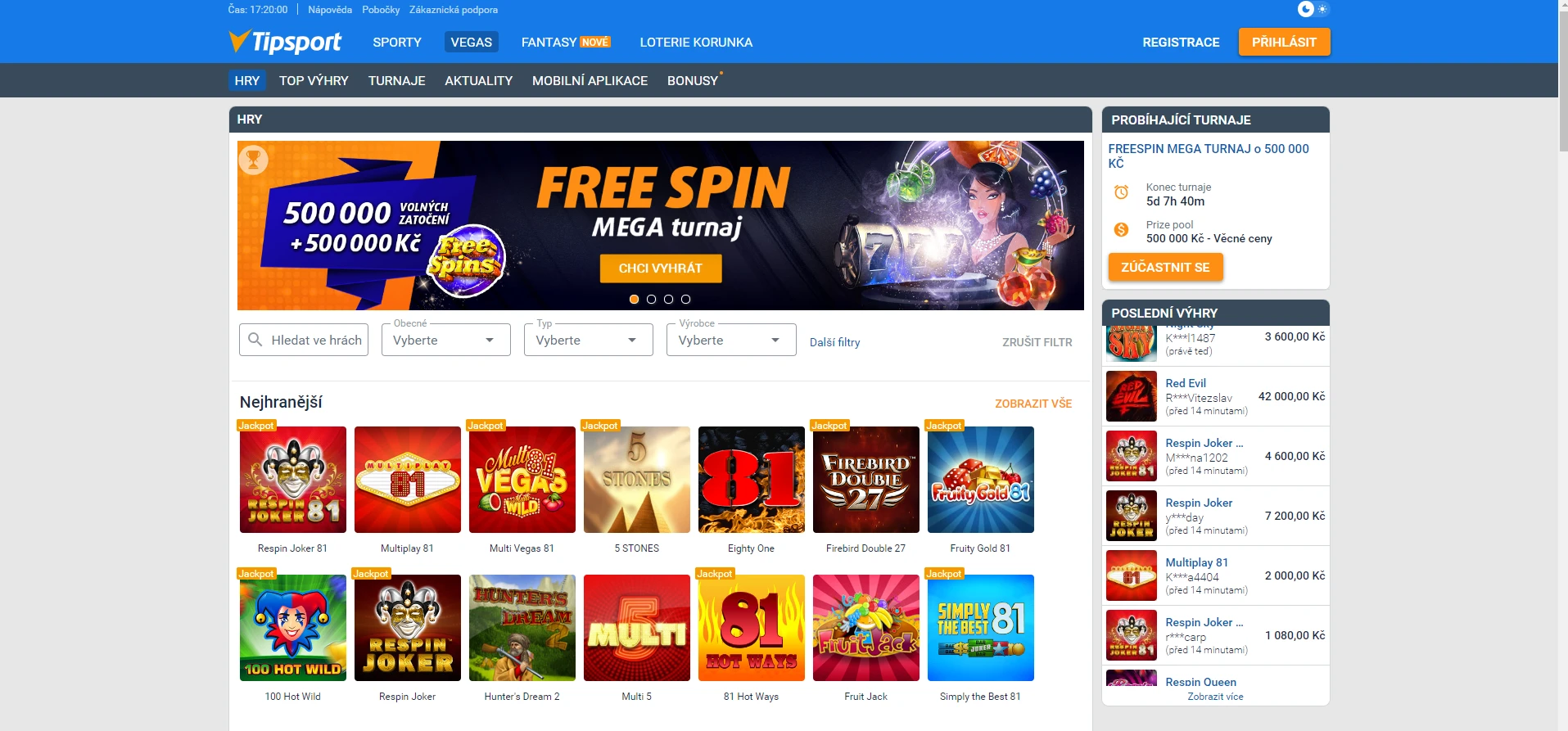Tipsport Vegas casino free spiny
