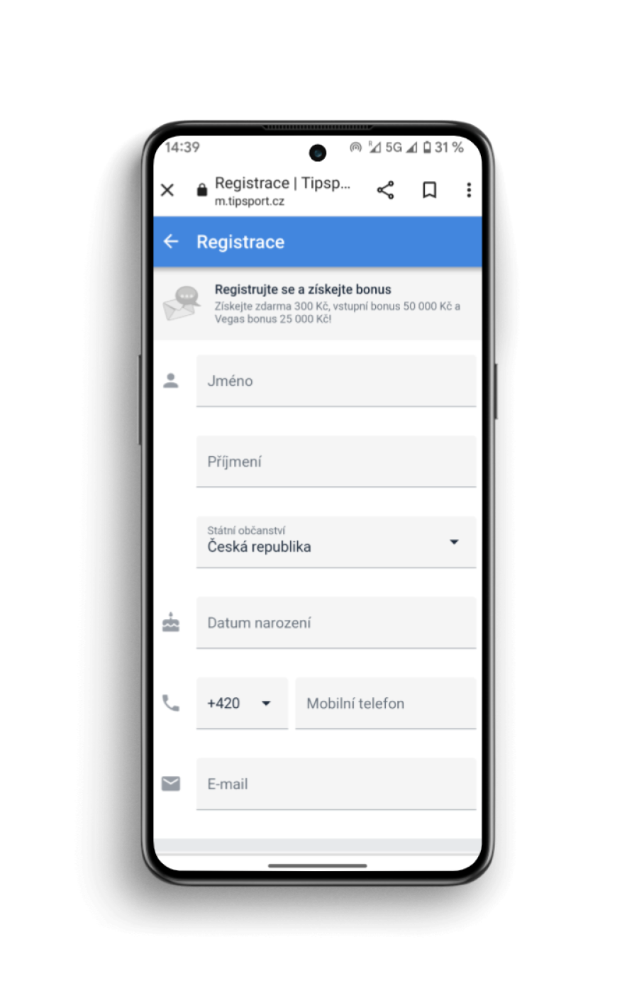 Tipsport Vegas casino bonus za registraci bez vkladu
