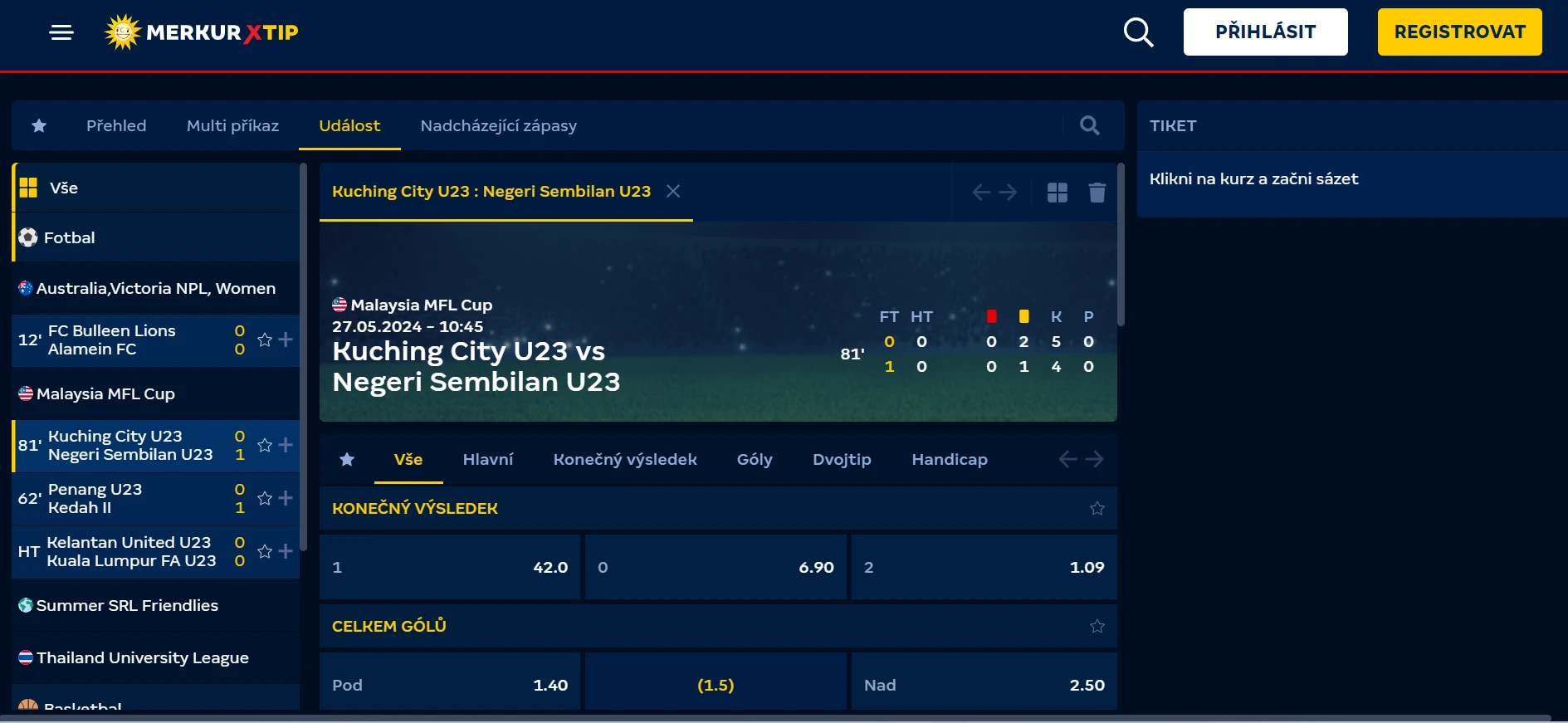 Kromě klasického pre-match sázení si můžete také vsadit LIVE. A to na většinu sportů, které MerkurXTip v nabídce má. Samozřejmě, že nabídka živého sázení je o něco chudší než u klasiky, ale také zde se určitě milovníci sportovního sázení vyřádí. LIVE sázení totiž dodává nový náboj nejen samotnému sázení, ale především sledování vašeho oblíbeného zápasu. V tabulce si najdete příslušný zápas, vybírat můžete i z nadcházejících zápasů. Vpravo se neustále zobrazuje váš tiket. Škoda jen, že sázkovka nevytvořila pro sázející alespoň chat, který by LIVE sázení ještě zpestřil.