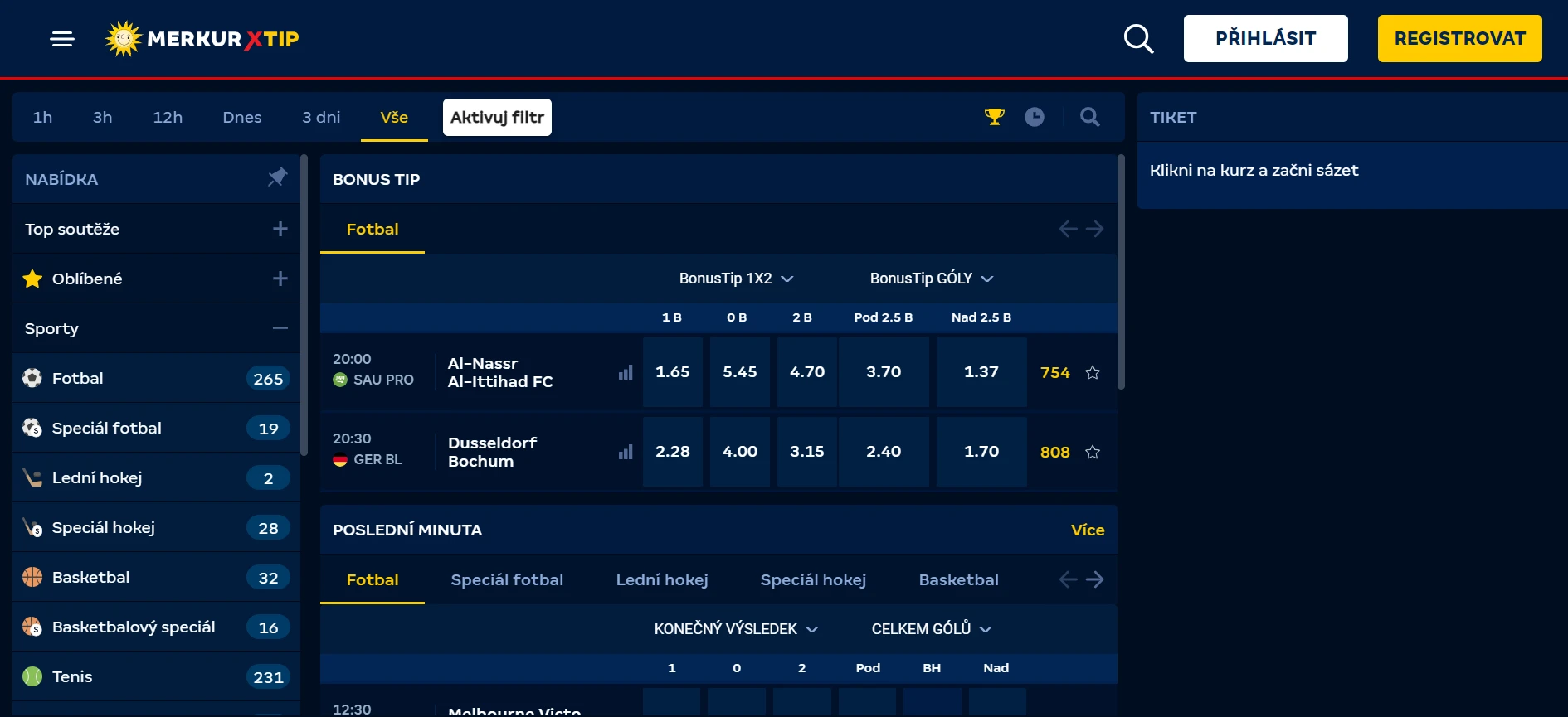 MerkurXTip ukládá k získání bonusu zcela transparentní podmínky, což kvitujeme s povděkem. Žádné sliby astronomických bonusů, k jejichž získání musíte stejně astronomické částky prosázet. U MerkurXTip získáte bonus 100 Kč, který vám společnost připíše na účet okamžitě po dokončení registrace (včetně zákonné povinnosti ověření identity). K prvnímu vkladu bez ohledu na jeho výši získáte 200 Kč. Tyto prostředky můžete okamžitě vsadit-