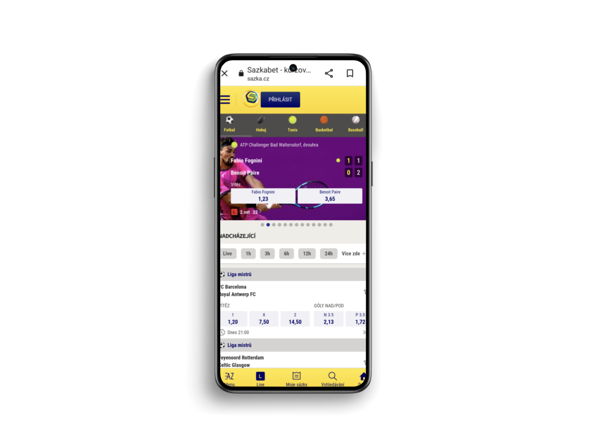Mobilní aplikace Sazky běží hezky, obsahuje všechny funkce jako webové rozhraní včetně LIVE streamů nebo výpisu toho, co se děje na hřišti pro ty, kdo chtějí informace okamžitě, ale nechtějí plýtvat daty.